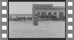 Uppträdande inför publik vid tempel, en så kallad cham-dans (kostymdans med masker inom vissa delar av tibetansk buddhism). De som uppträder bär mask och dansar till musik, framförs av munkar. Format ljud: stum
