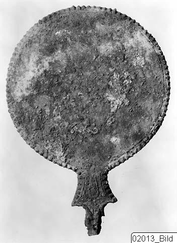 • Spegel i brons Före konservering.