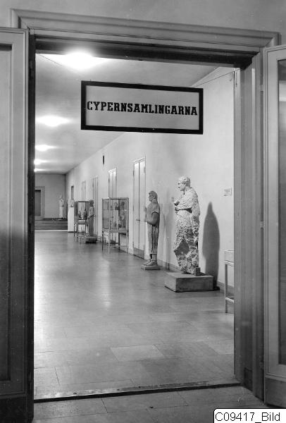 Cypernutsällningen i Historiska museet (utanför hörsalen). Statyn närmast i bild är Me. 0616. Längst bort skymtar A.I. 2072. Stockholm Svenska Cypernexpeditionen