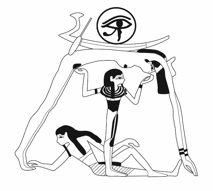 • Sketch of the creation as it is presented on the coffin fragment MME 1977:018 (Drawing: Emma Westerberg).