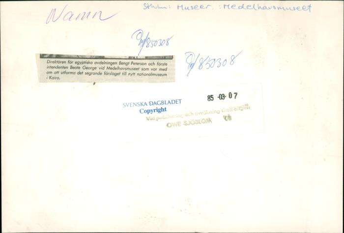 • Bilden tillhör samling med bilder (ext-) som inte är Medelhavsmuseets bilder. Denna bild är stämplad med Svenska Dagbladets bildarkiv och såldes på Ebay 2020.