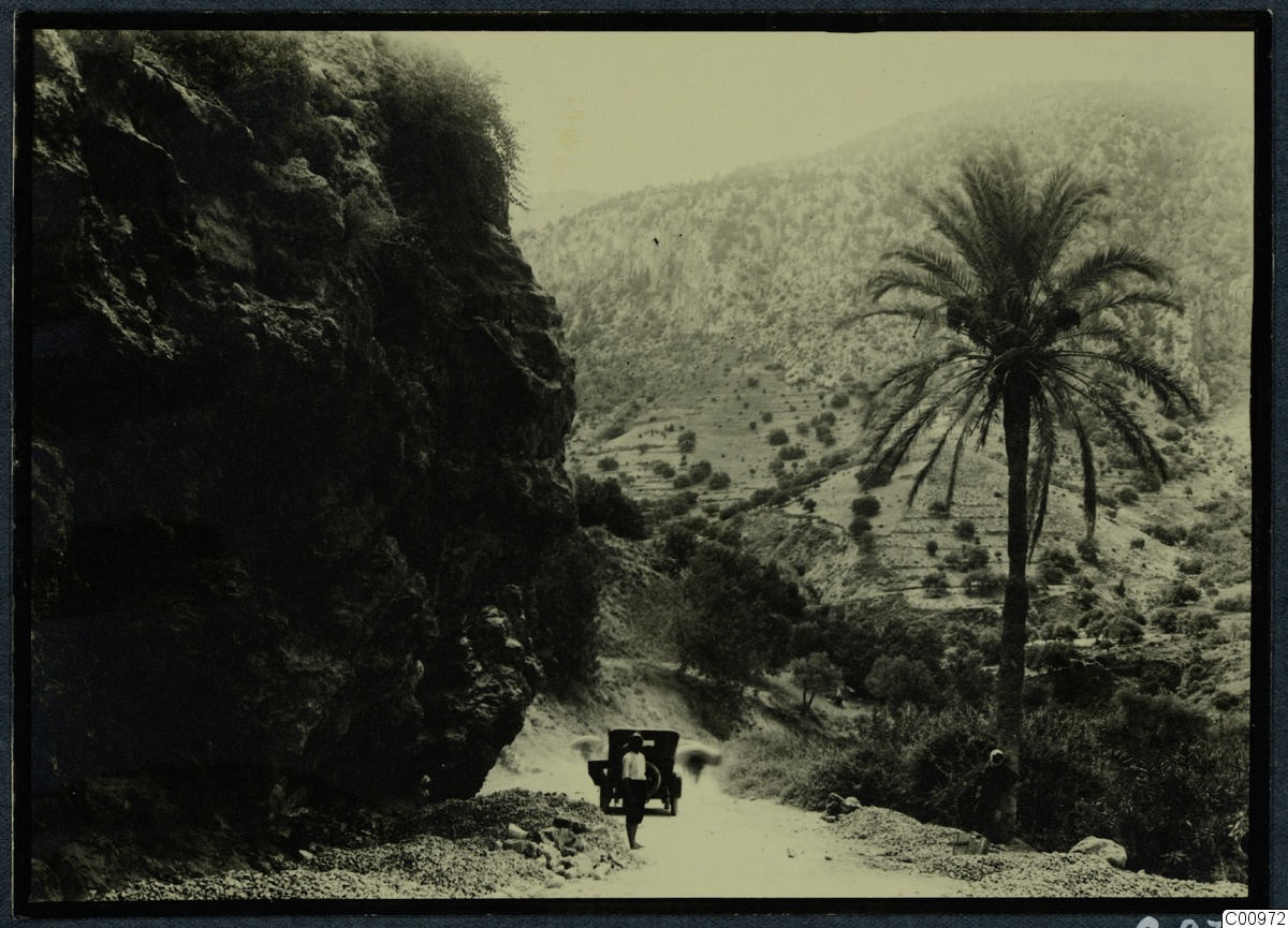 berg, kulle, träd, landskap, man, Svenska Cypernexpeditionen, bil, väg, photograph, fotografi