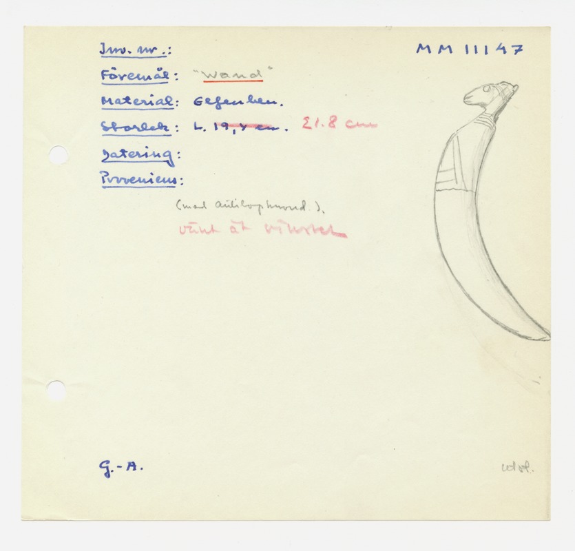 • Katalogkort ur Egyptiska avdelningens lappkatalog, D1B:3, Medelhavsmuseet. Riksantikvarieämbetet och Statens historiska museer, MM 11 000-11 499.