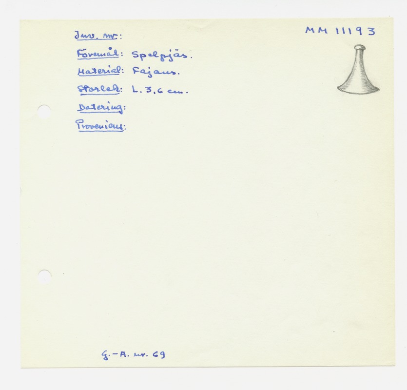 • Katalogkort ur Egyptiska avdelningens lappkatalog, D1B:3, Medelhavsmuseet. Riksantikvarieämbetet och Statens historiska museer, MM 11 000-11 499.