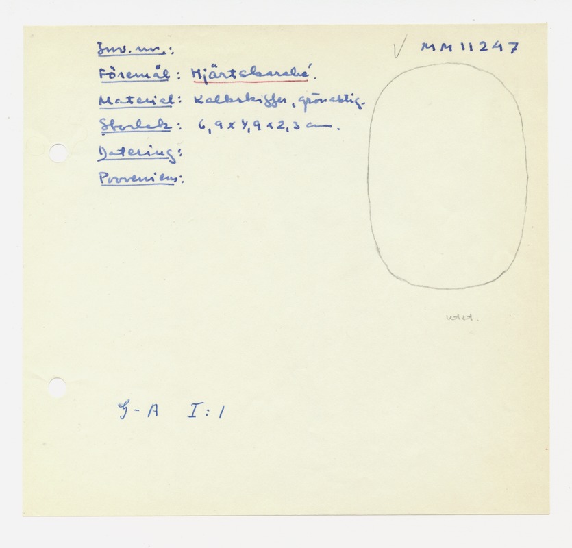 • Katalogkort ur Egyptiska avdelningens lappkatalog, D1B:3, Medelhavsmuseet. Riksantikvarieämbetet och Statens historiska museer, MM 11 000-11 499.
