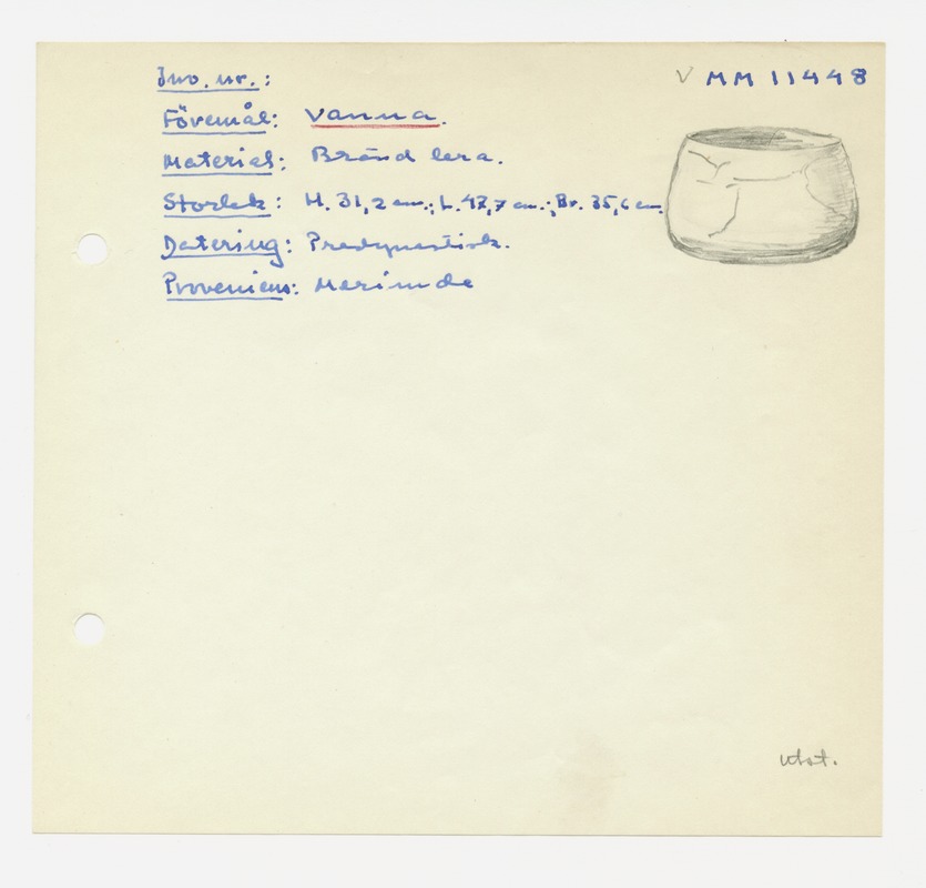 • Katalogkort ur Egyptiska avdelningens lappkatalog, D1B:3, Medelhavsmuseet. Riksantikvarieämbetet och Statens historiska museer, MM 11 000-11 499.
