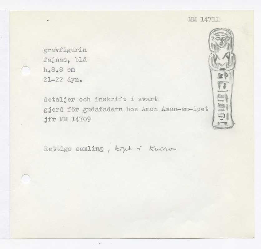 • Katalogkort ur Egyptiska avdelningens lappkatalog, D1B:6, Medelhavsmuseet. Riksantikvarieämbetet och Statens historiska museer, MM 14 500-14 999.