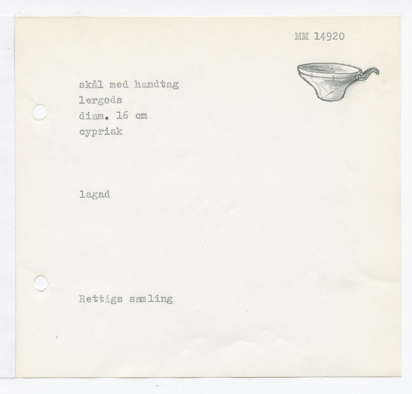 • Katalogkort ur Egyptiska avdelningens lappkatalog, D1B:6, Medelhavsmuseet. Riksantikvarieämbetet och Statens historiska museer, MM 14 500-14 999.