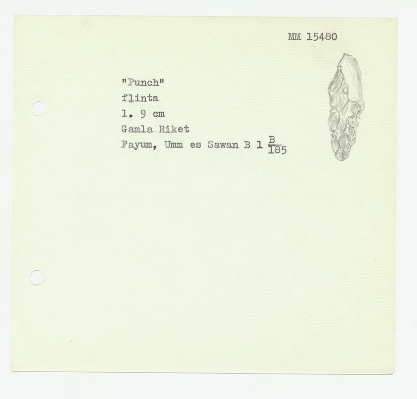 • Katalogkort ur Egyptiska avdelningens lappkatalog, D1B:7, Medelhavsmuseet. Riksantikvarieämbetet och Statens historiska museer, MM 15 000-15 499.