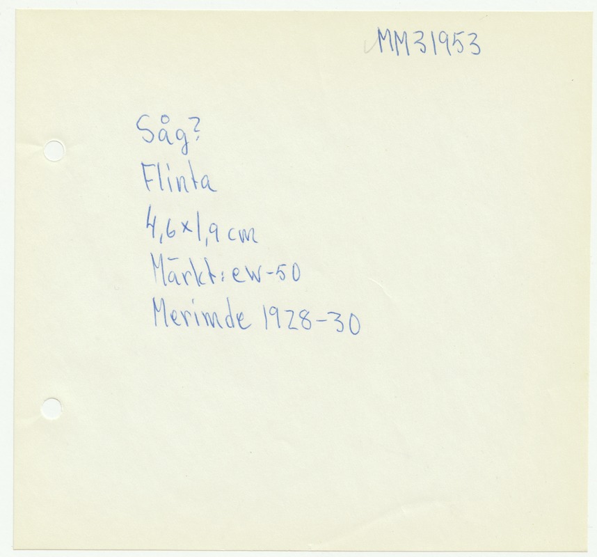 • Katalogkort ur Egyptiska avdelningens lappkatalog, D1B:17, Medelhavsmuseet. Riksantikvarieämbetet och Statens historiska museer, MM 31 500-31 999.