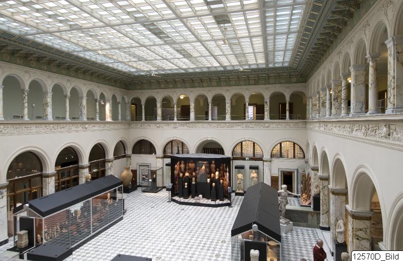 Centralhallen i museet. Museet var stängt under ett år 88-89 för ombyggnad. Invigdes 1989 av Bengt Göransson. Man byggde en förgylld portal. Genom denne kom besökaren in till ett grekisk-romerskt torg...Visa hela