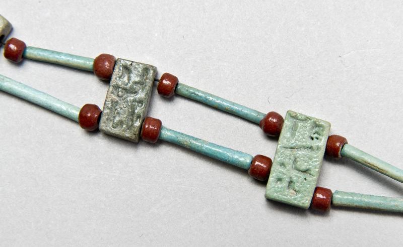 - Faience, green, red, turquoise