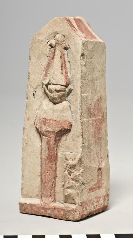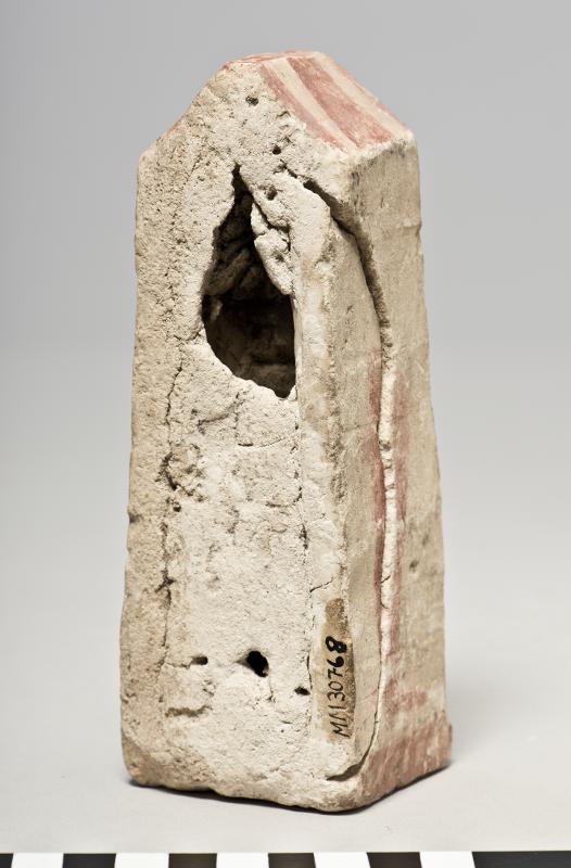 Small obelisk-shaped coffins for mummified shrews. The sun god was thought to take the form of a shrew at night. At the same time the night sun was associated with Osiris, who is depicted on a number of the coffins.