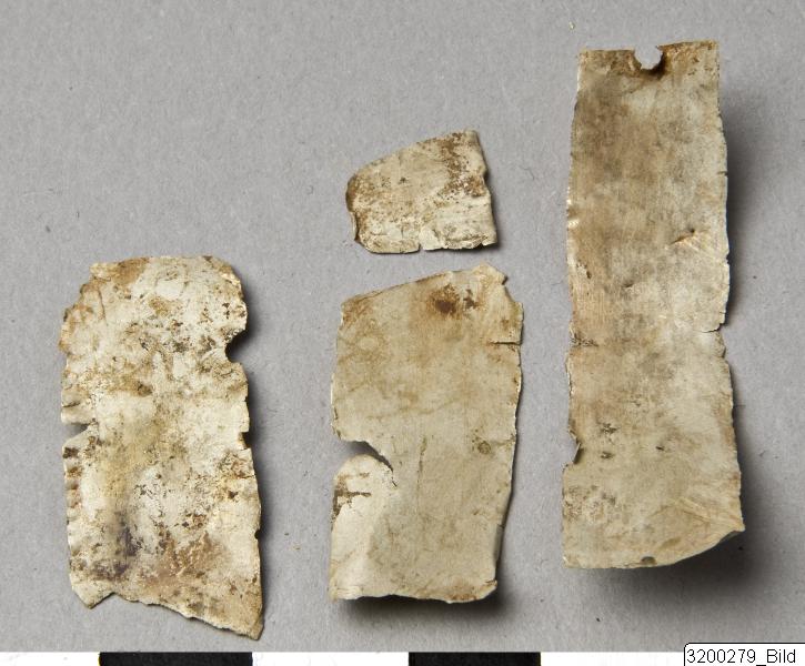 • Four fragments of a rather narrow strip of white gold.