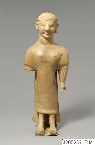 Head = 2462, Body = 2801 (suppl.). Left foot incorrectly marked 2441. Gjerstad’s Cypro-Greek style. Studied by Sandra Christou 2006. Face. Needs steel support. vikt; 7 kg
