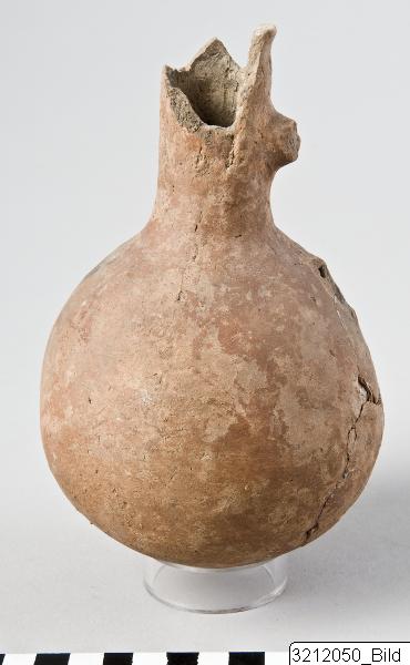 • Cylindrical neck. Globular body with round base. Buff clay.