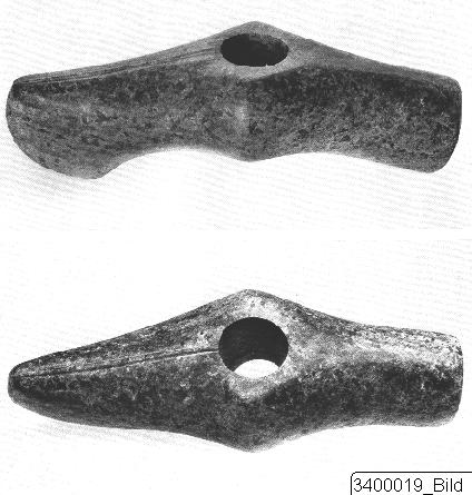 This implement may be a ceremonial battle-axe, as indicated by its well-preserved condition, fine workmanship and highly polished surface. It is half axe, half hammer and the longitudinals of both parts together form an obtuse angle. The axe has a flaring blade with the upper side facetted lengthwise, probably an imitation of the cast-seam of its metal counterparts. In the middle there is a well-drilled hole for the handle. Axes of this type have to a large extent been found in Troy. The most well known examples come from Schliemann’s Treasure from Troy II. It was discovered in 1890 near the center of the citadel and included four magnificent battle-axes; three made of nephrite and one of lapis lazuli. They are all well-polished and decorated with ridges and knobs in relief. Similar pieces have also been excavated in South Russia (Bessarabia, Borodino) and on the Greek mainland (Thessaly), which may exemplify the far-reaching commercial contacts in which Troy also participated. The type is further represented in East Anatolia (Alisar) by a fragment of a similar axe made of green stone. Typologically they all belong to a kind of a battle axe occurring from North Scandinavia to Switzerland, South Germany, Hungary, and South and Central Russia. The examples deriving from South and Central Russia may be intermediaries between the axes from the North and Asia Minor, but it seems more probable, however, that this type of battle-axe is characteristic of the Eastern Mediterranean. The axe was important in antiquity, in war, in the chase, as well as for domestic purposes. Making one was a rather complicated procedure with the simple instruments available – flint knives, sand and water. A suitable piece of stone was worked out with a hammer, and then sharpened and polished on a block of sandstone., and fastened onto a handle. The perforation, probably made before the final treatment, was drilled with a stick, sand and water. Since the occurrence of this kind of axe is most frequent in Troy, one may base the dating of this example on a comparison with its counterparts from that area. The type is represented once in Troy I and it is most probable that it was only exceptionally in use in the Mycenean period and later. The main part of the axes with a known find-context was, with a few exceptions, found in the layer of Troy II. This axe is therefore likely to derive from Asia Minor, possibly the area of Troy. Typologically it seems to belong to Troy II or circa 2500-2300 BC. Marie-Louise Winbladh