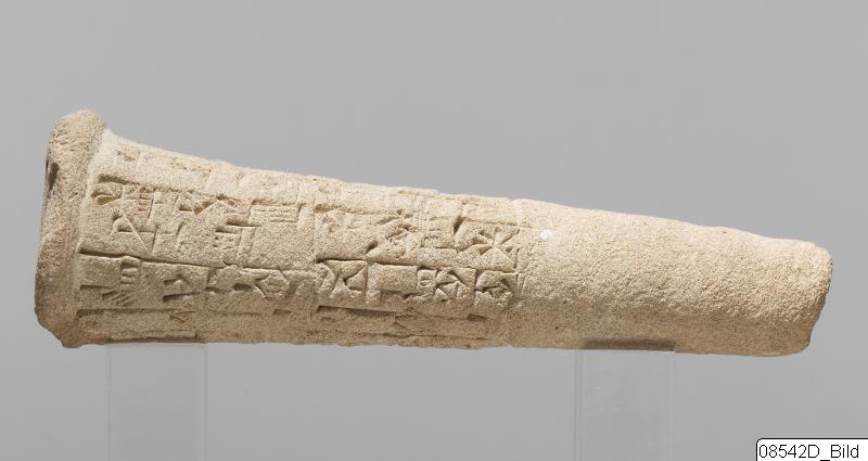 One of building cones from different temples at Girsu (Tello) with Sumerian inscriptions of the ruler Entemena. This and MM 1977:11 are inscribed with the same inscription (with minor variants noted in the transliteration below) of Entemena (also read Enmetena), who ruled the city-state Lagash c. 2450 BC. This city-state consisted of the main cities Lagash (Modern Al-Hiba) and Girsu (Modern Tello)...