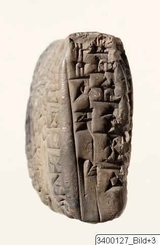 Letter sent from a certain Nergal-mushallim to his father. Previously, the father had written to his son concerning some bulls. Referring to that letter the son informs his father that the bulls will be sent. Translation: “To my father say: Thus (says) Nergal-Mushallim: Shamash and Marduk for my sake may eternally give my father life! Concerning what my father has written Thus my father:One three-years-old bull, of which you spoke, send and two three-years-old bulls add, then, for two three-years-old bulls I will give you money, On which my father wrote to me. (As to) the cattle, which I have bought, the money has fallen, and then to the money they have adapted (it). As to the elders, 120 cattle the money for which is the purchase money, which I have given, they will receive. 10 minas of silver from the house of the banker I have borrowed for them and then given to them. Since the 15th day they are in Babylon. The cattle, the bulls which I shall take, until the 3rd day will be redeemed. This cattle will arrive, yea, it has arrived. (i.e.) the cattle, the bulls of which I shall take. One fine three-year-old bull, of which I spoke to my father, and two fine three-year-old bulls for money I shall take, and then before my father I shall go. Until this third day my father may wait. It will not be difficult for me.”
