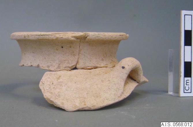 Merparten av mynningen och halsen med ett litet skulderparti och ett av handtagen. Ytterligare skulderskärvor och ett handtag finns, men saknar passningar sinsemellan. Godset är mycket hårt vittrat; det är poröst, mjukt, pulvrigt och skiktat i både sid- och djupled. Ytan är så svårt vittrad att spåren av ytbehandlingen är så gott som utplånade. Det rekonstruerade kärlet är mycket skört eftersom fogarna har en klen anläggningsyta. (Konserveringsrapport, Acta, 2013)