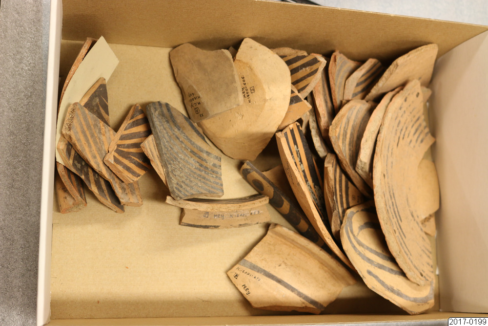 • Dokumentation av låda med skärvor. Dokumentation av låda KANSU 15-63 med arkeologiskt material.