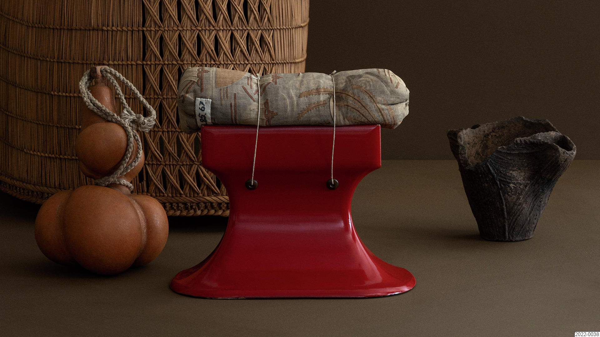 • Marknadsföringsbild för utställningen Juxtaposing Craft, Östasiatiska museet. Två föremål från Etnografiska museets samlingar och ett från Östasiatiska.