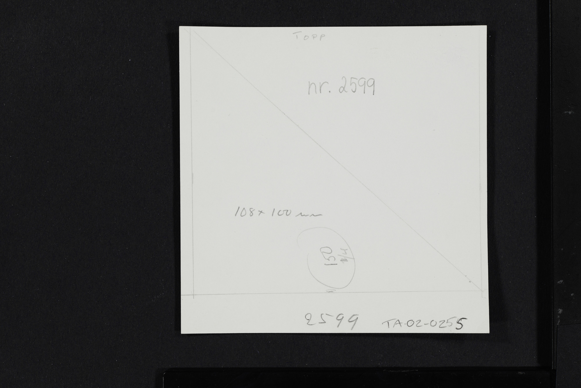 • Text, påsikt: Topp Nr 2599. 108x100 mm 150 ¼ . Text på huvudkuvert: STEN. 2599.