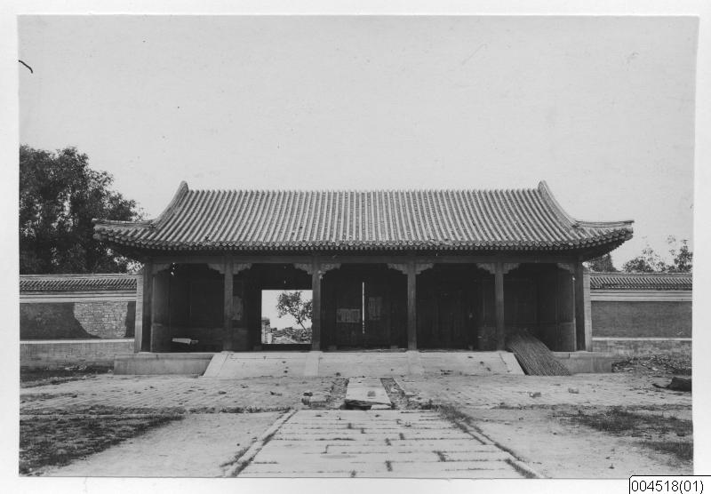 • Yuanmingyuan (Old summer palace): Entrance Gate. Entrébyggnad med mur. Genom den öppna porten kan man skymta ruinerna.