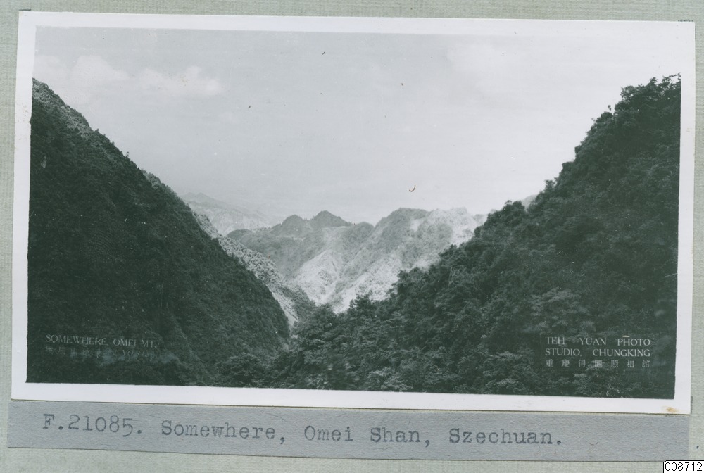 Somewhere, Omei Shan (Emeishan), Szechuan (Sichuan). Teh Yuan Photo Studio (Deyuan zhaoxiang guan), Chungking (Chongqing).