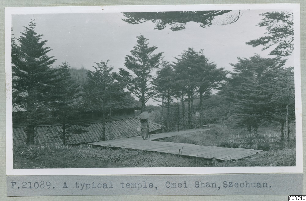 A typical temple, Omei Shan (Emei shan), Szechuan (Sichuan).Teh Yuan Photo Studio (Deyuan zhaoxiang guan), Chungking (Chongqing).
