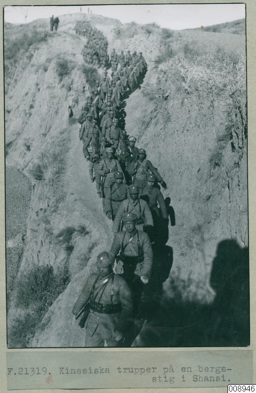 • Kinesiska trupper på en bergsstig i Shansi (Shanxi).