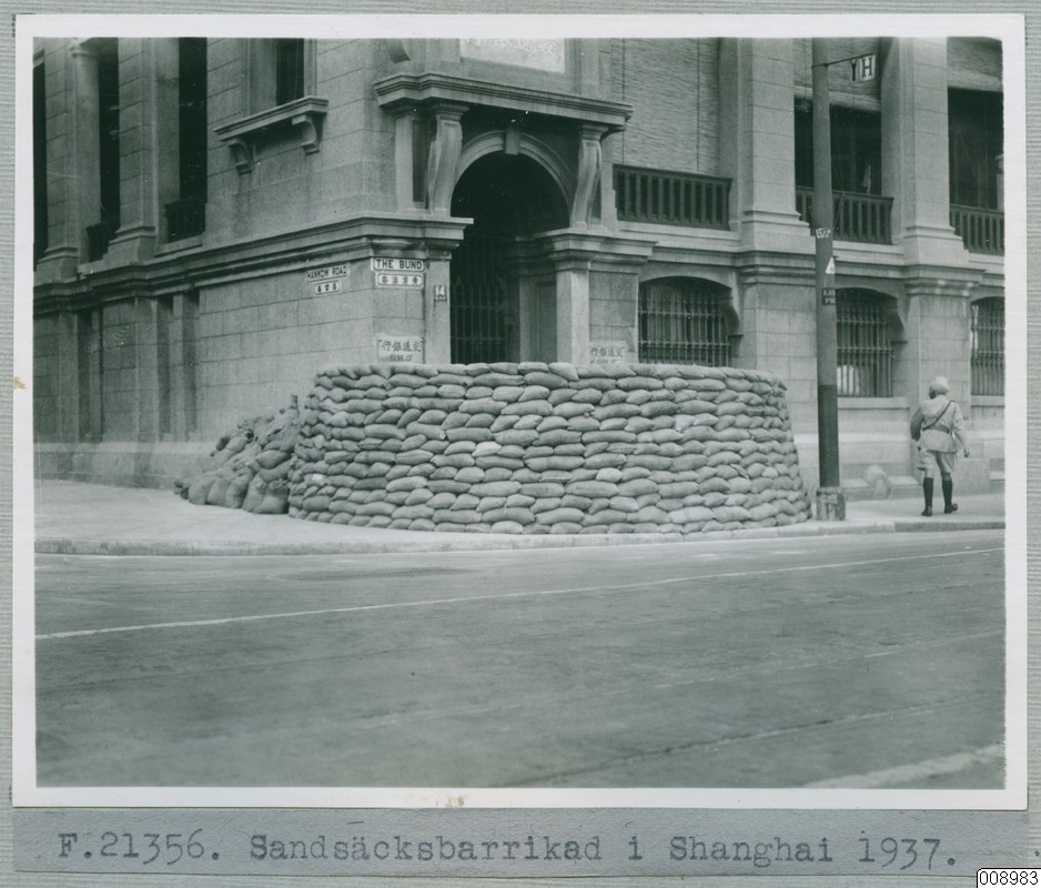 • Sandsäcksbarrikad i Shanghai, 1937.