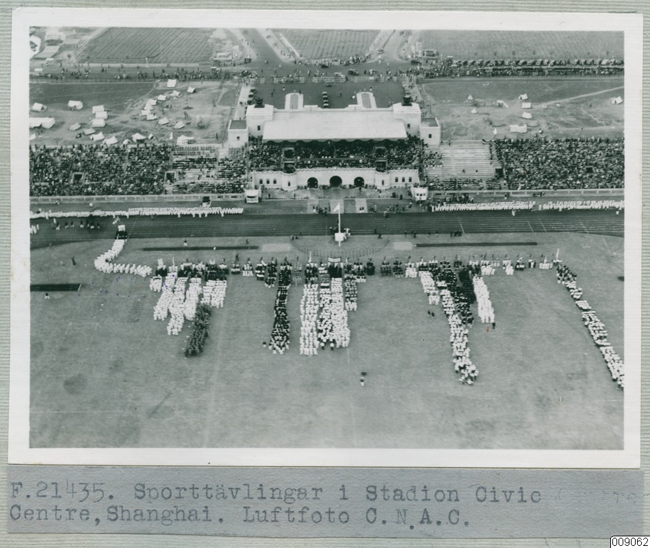 • Sporttävlingar i Stadion, Civic Centre, Shanghai. Luftfoto C.N.A.C.