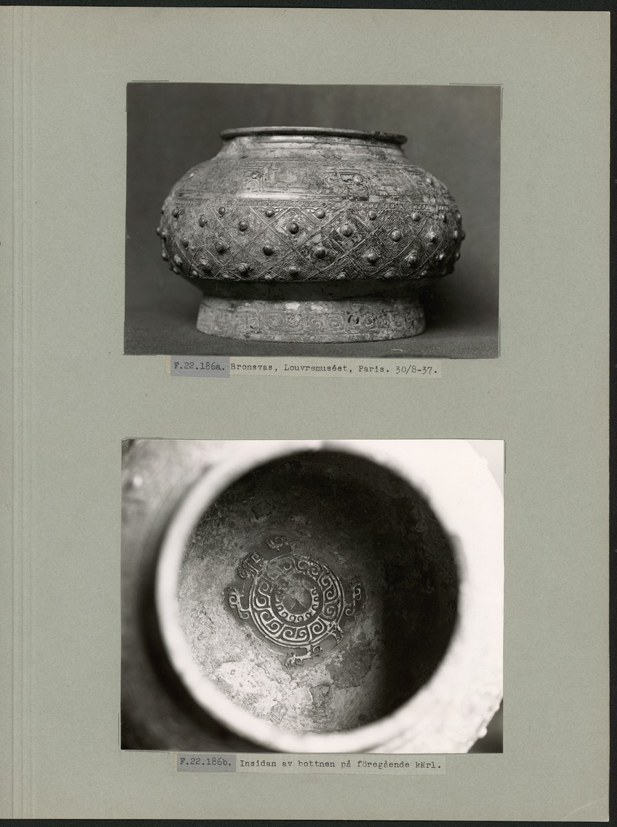 • Katalogsida med bilder ur Östasiatiska museets bildarkiv. F-nummer.