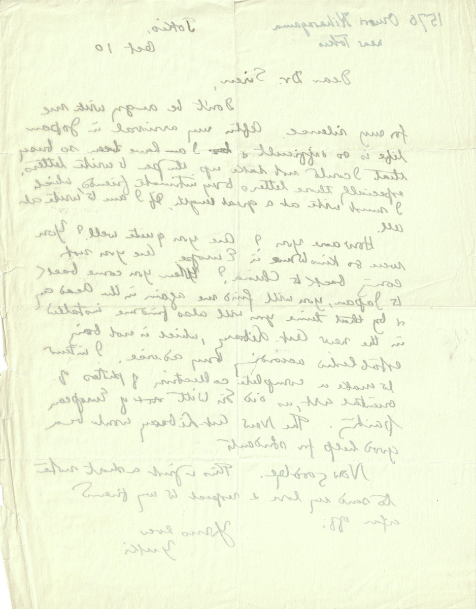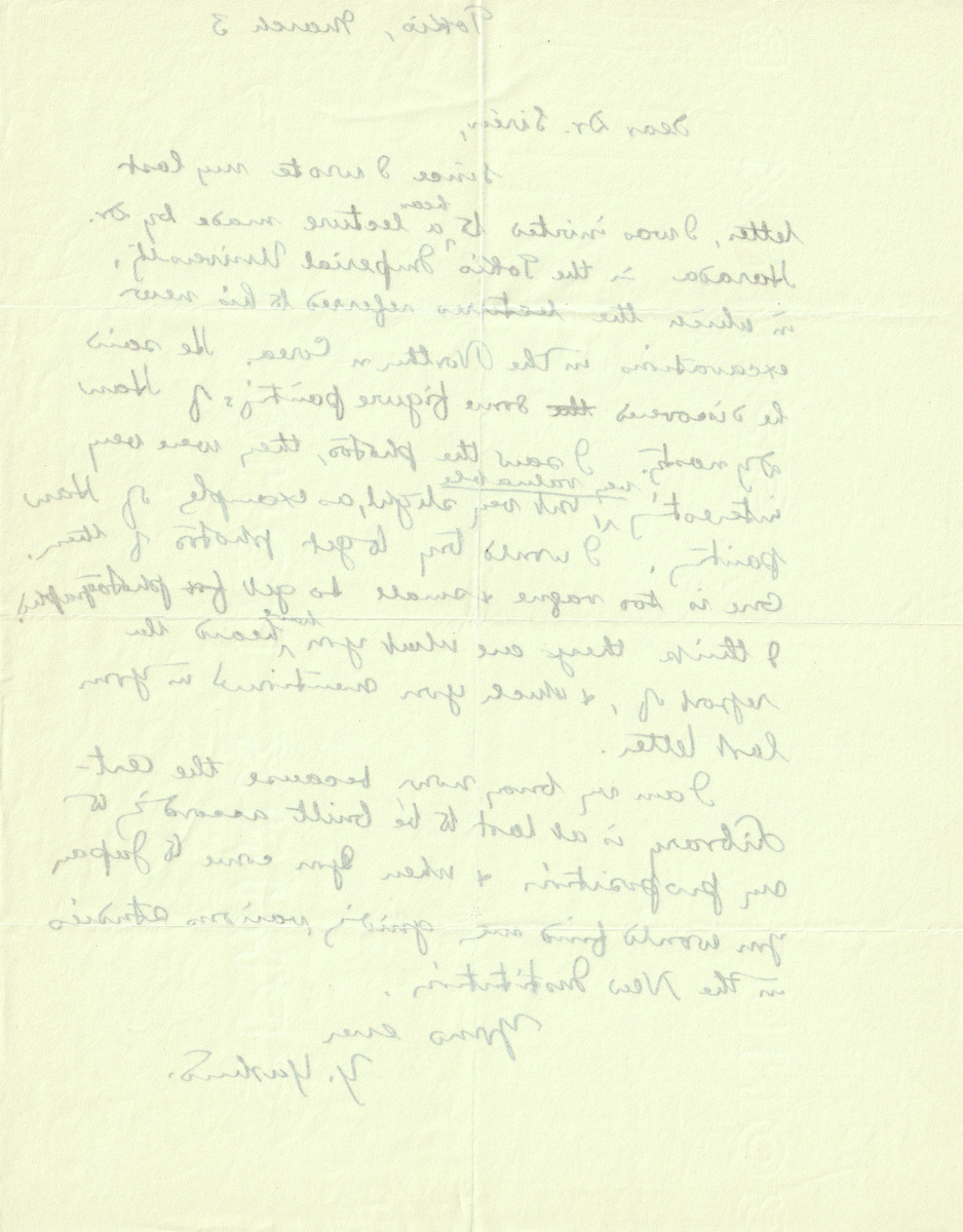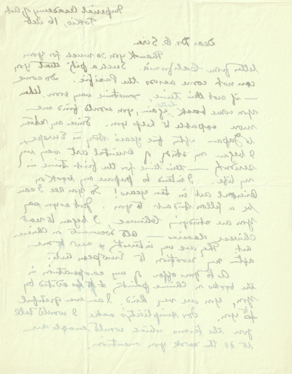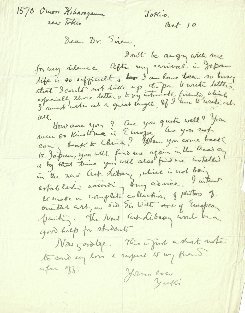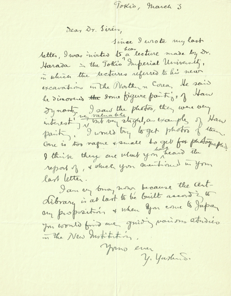 • Ett antal brev från Yukio Yashito till Sirén och ett svartvitt vykort med berget Fuji som motiv. Även brev från New York och Pennsylvania,