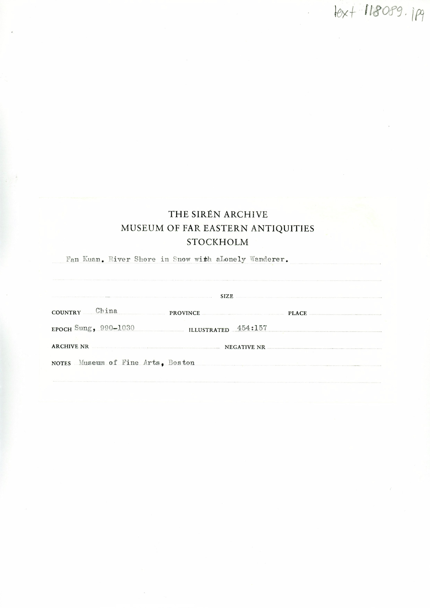 • Katalogkort för Osvald Siréns bildsamling.