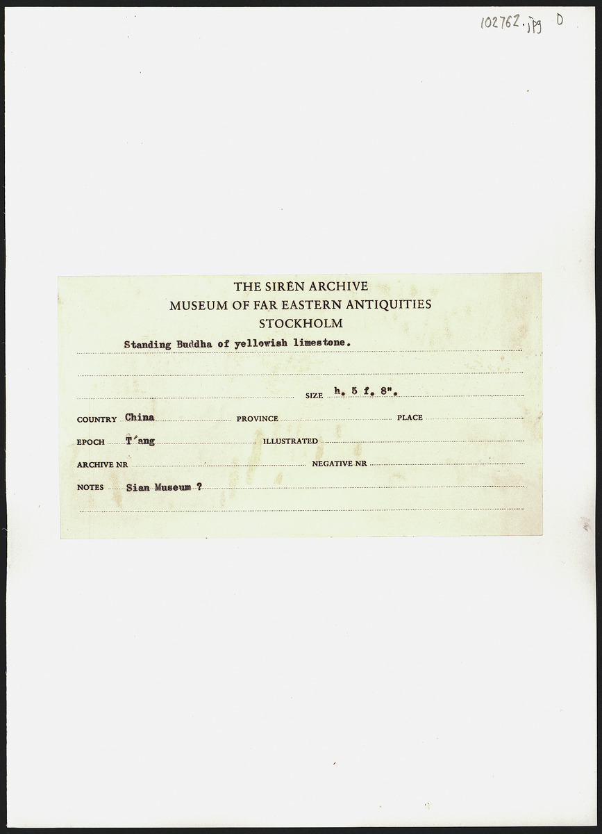• Katalogkort ur Östasiatiska museets arkiv, box 62.