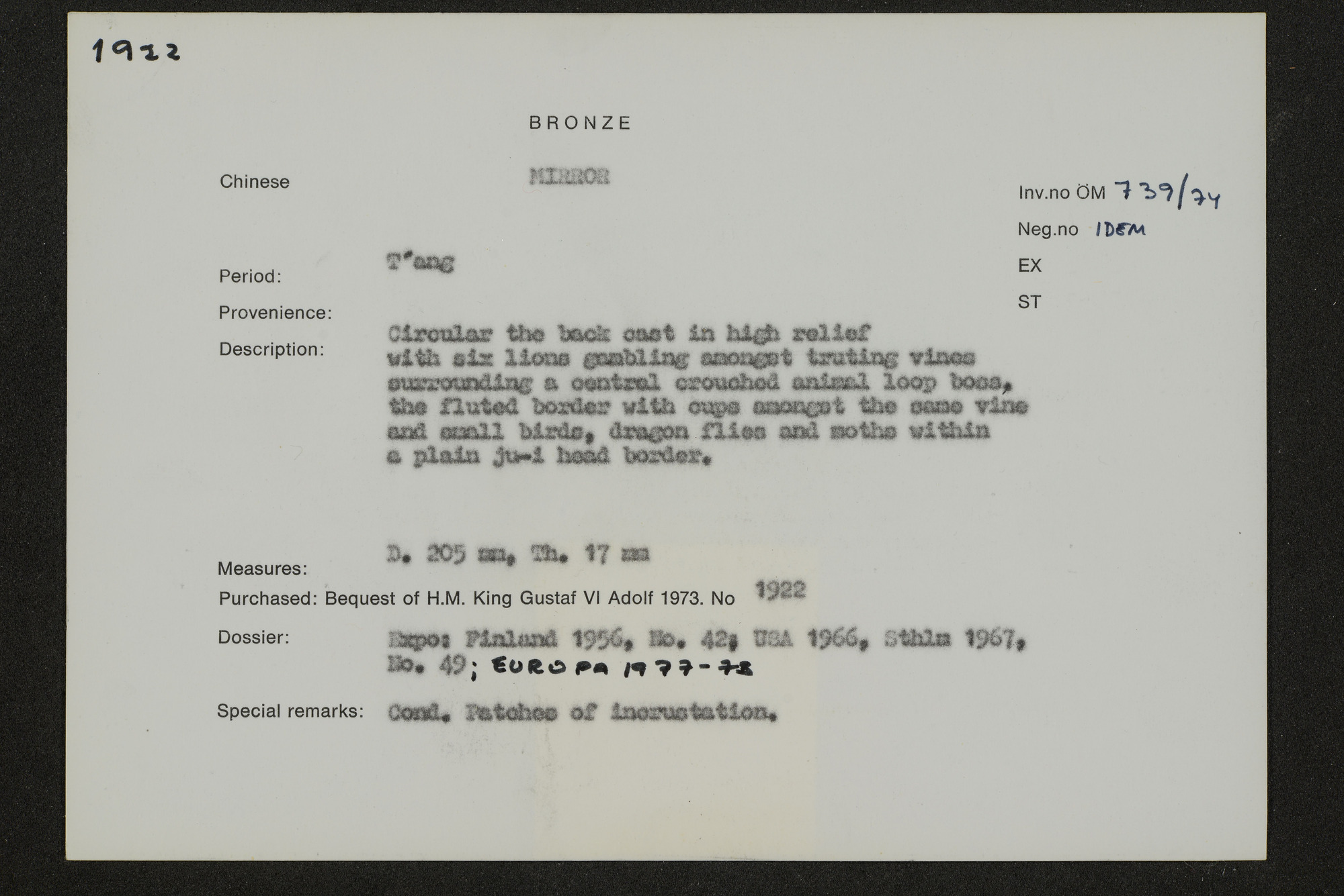 • Katalogkort ur Östasiatiska museets arkiv som beskriver föremål ur samlingarna.