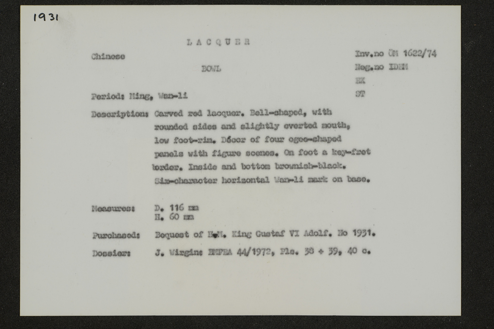 • Katalogkort ur Östasiatiska museets arkiv som beskriver föremål ur samlingarna.