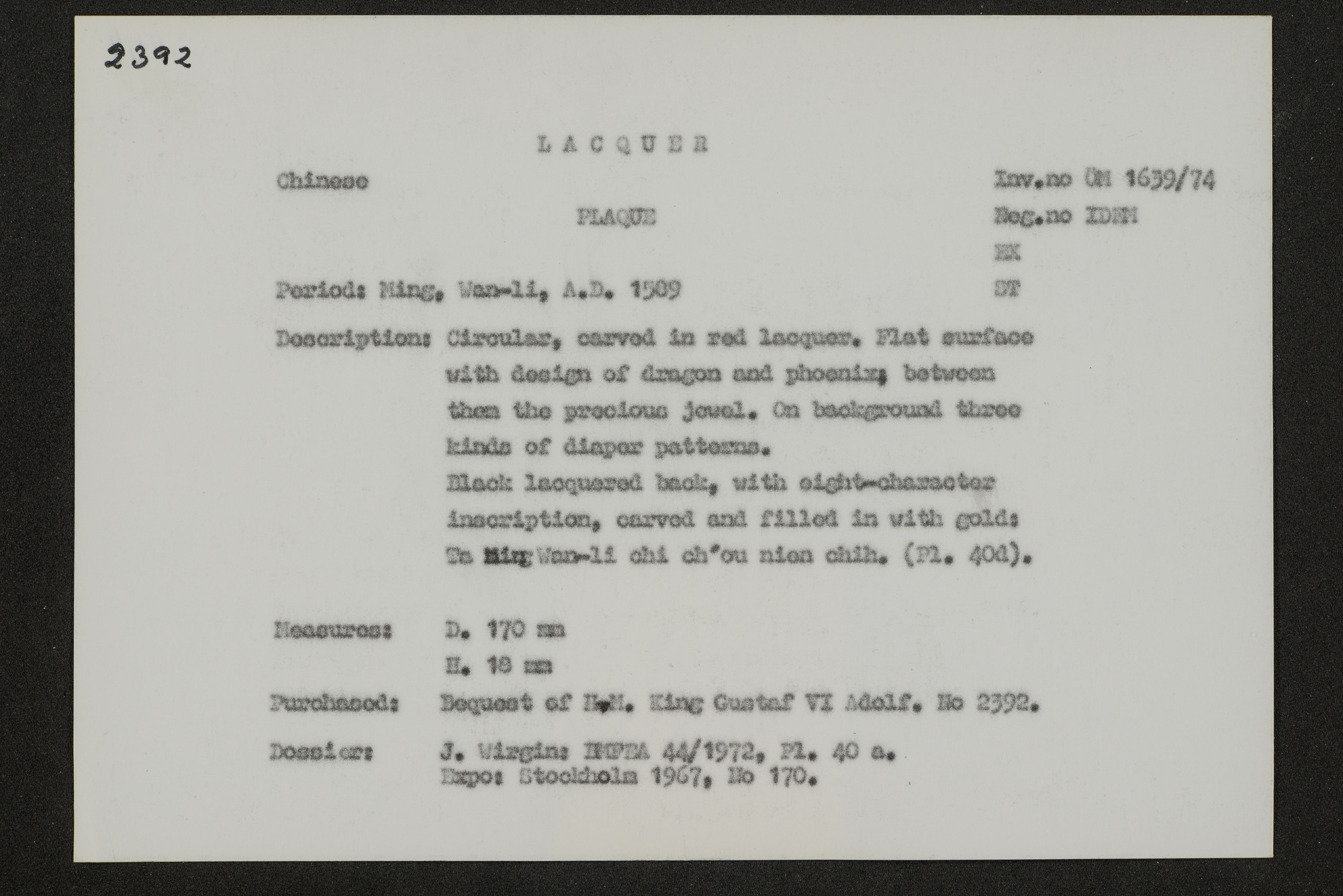 | Källa <presOrganization> | Statens museer för världskultur - Östasiatiska museet |