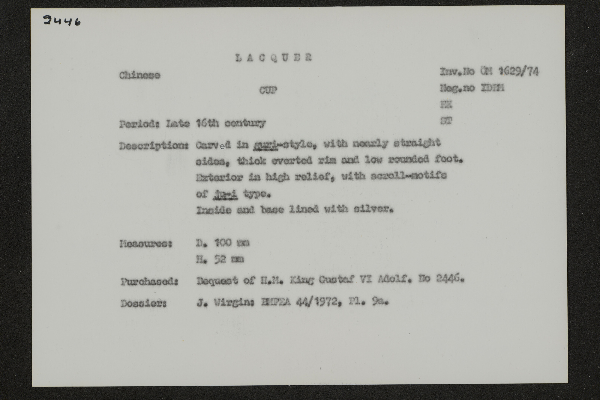 • Katalogkort ur Östasiatiska museets arkiv som beskriver föremål ur samlingarna.