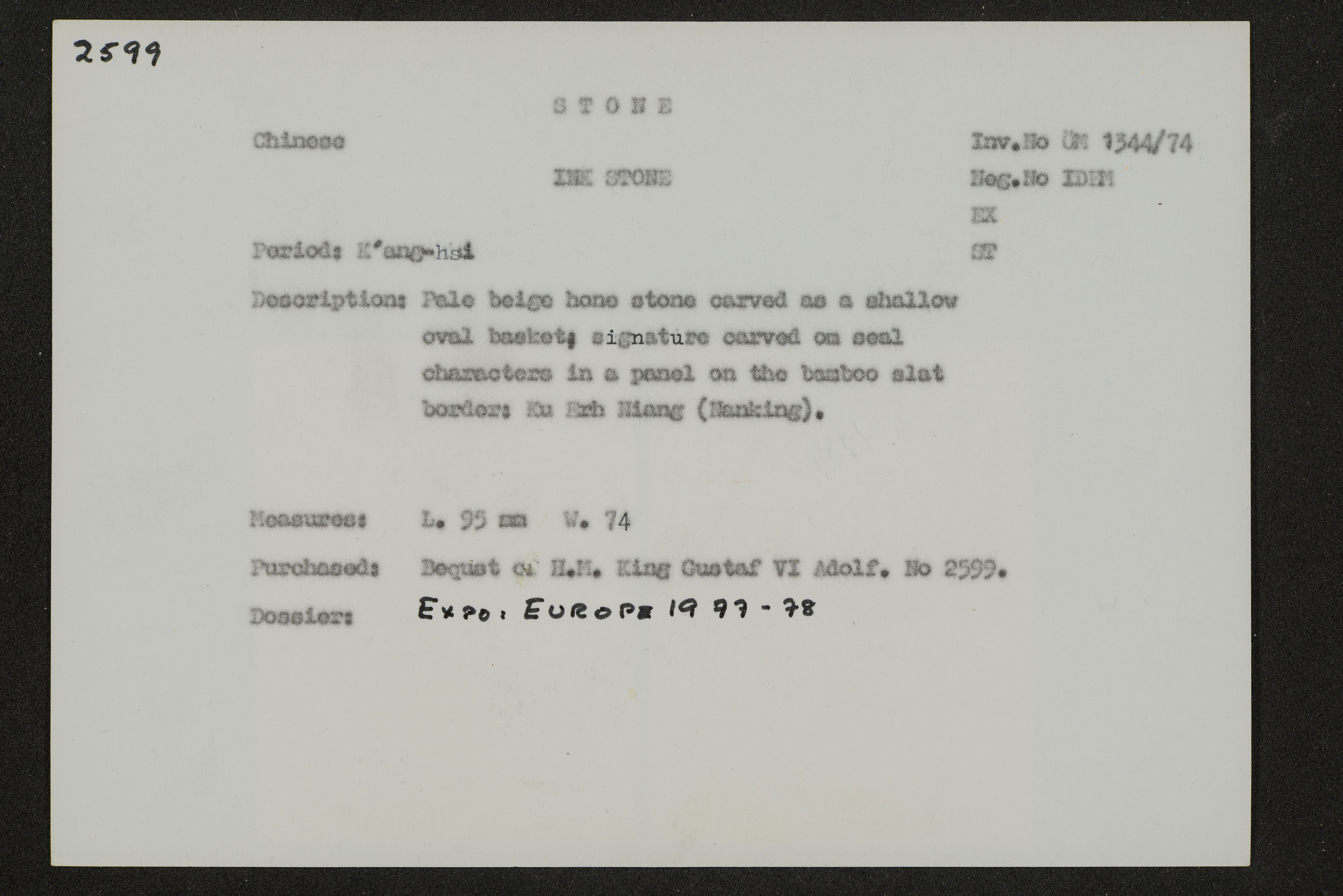 • Katalogkort ur Östasiatiska museets arkiv som beskriver föremål ur samlingarna.