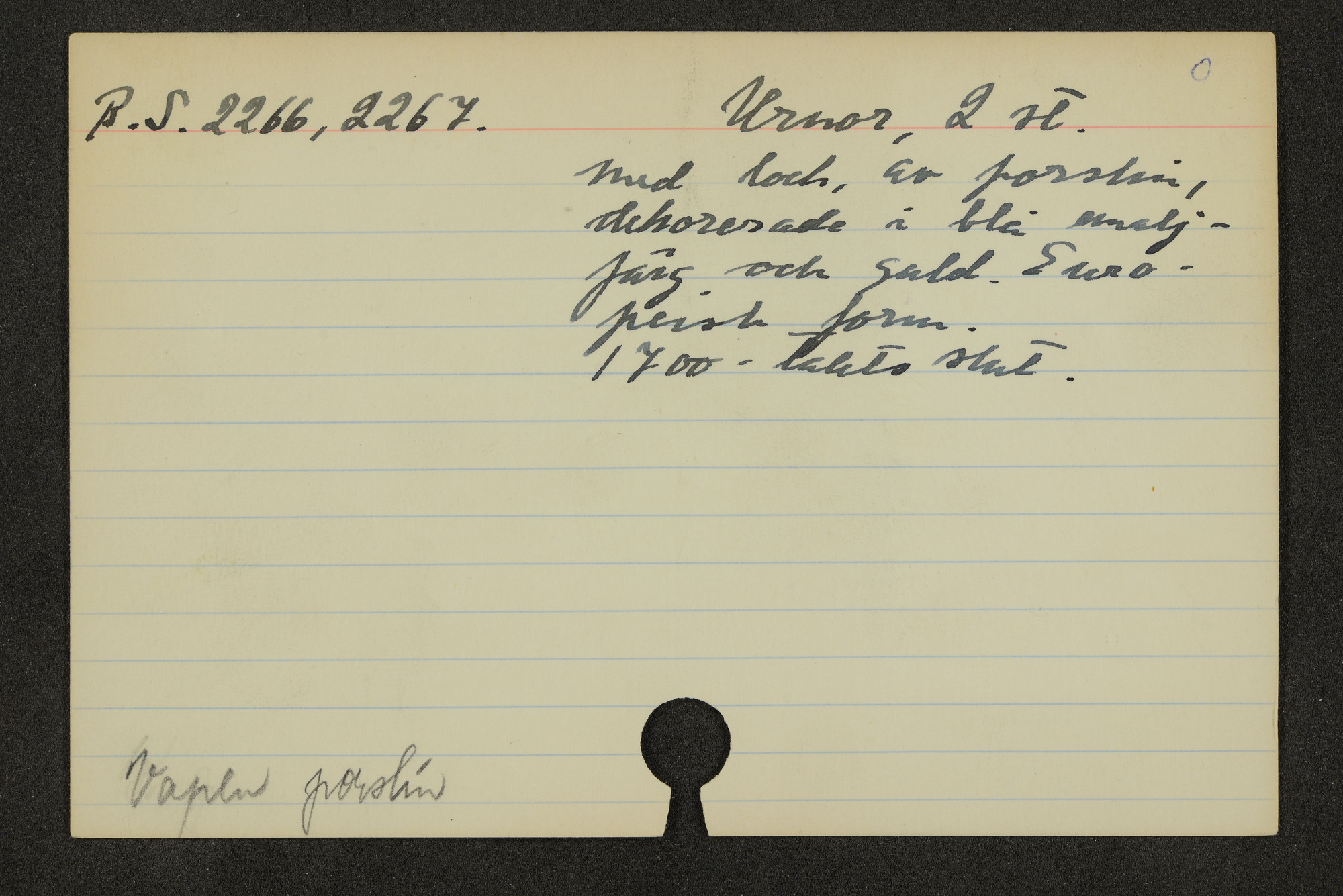 • Katalogkort ur Östasiatiska museets arkiv som beskriver föremål ur samlingarna.