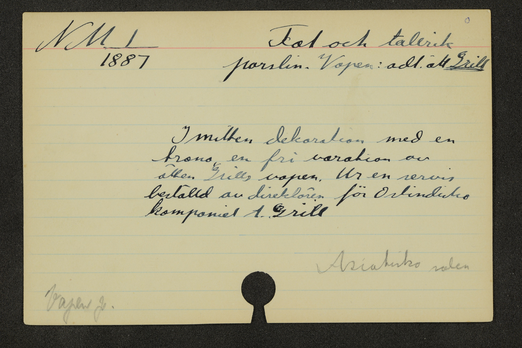 • Katalogkort ur Östasiatiska museets arkiv som beskriver föremål ur samlingarna.