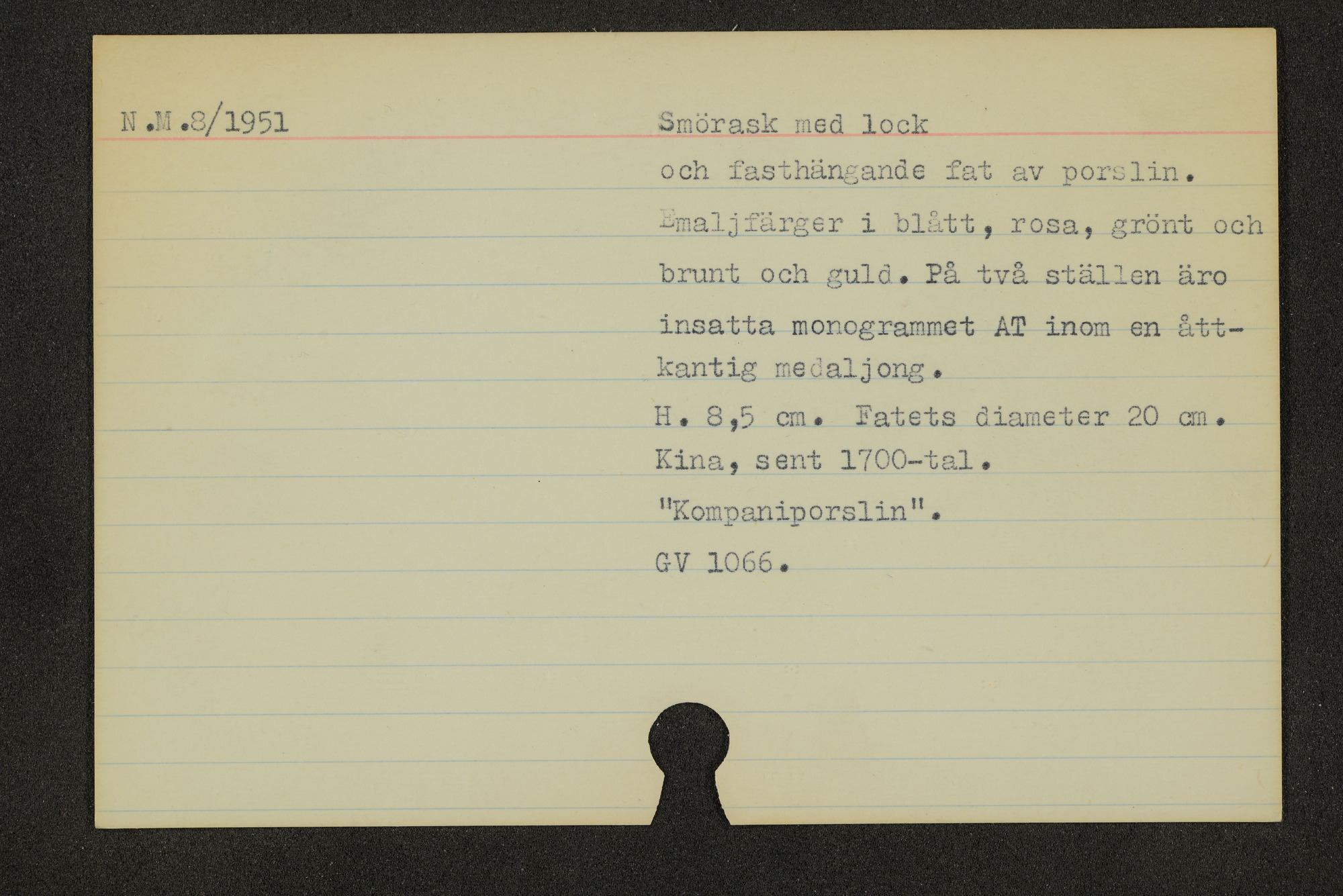 • Katalogkort ur Östasiatiska museets arkiv som beskriver föremål ur samlingarna.