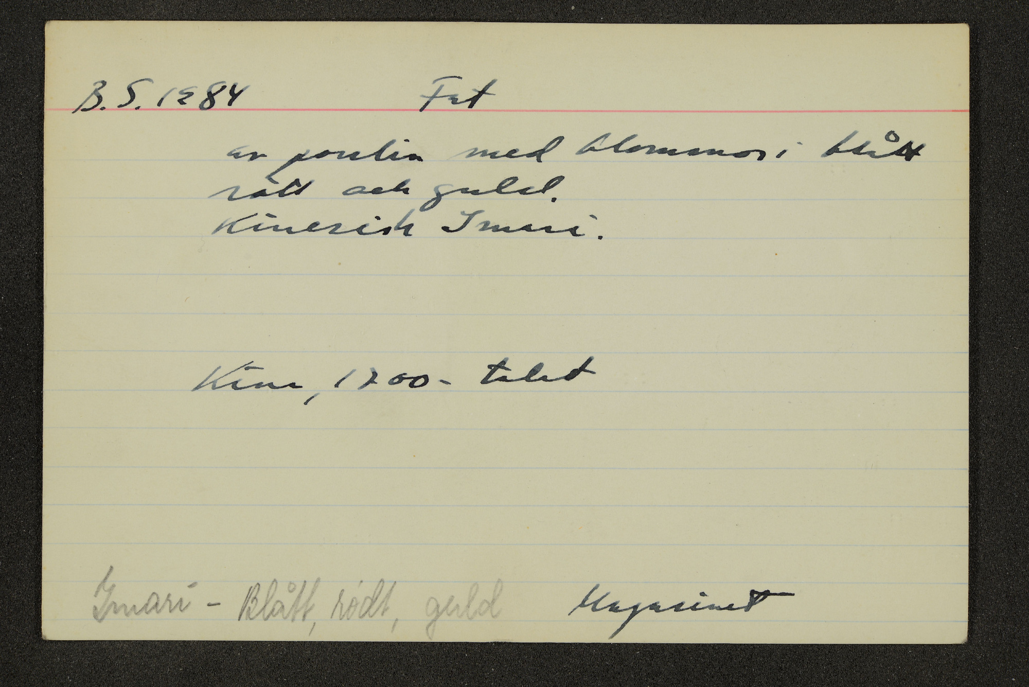 • Katalogkort ur Östasiatiska museets arkiv som beskriver föremål ur samlingarna.