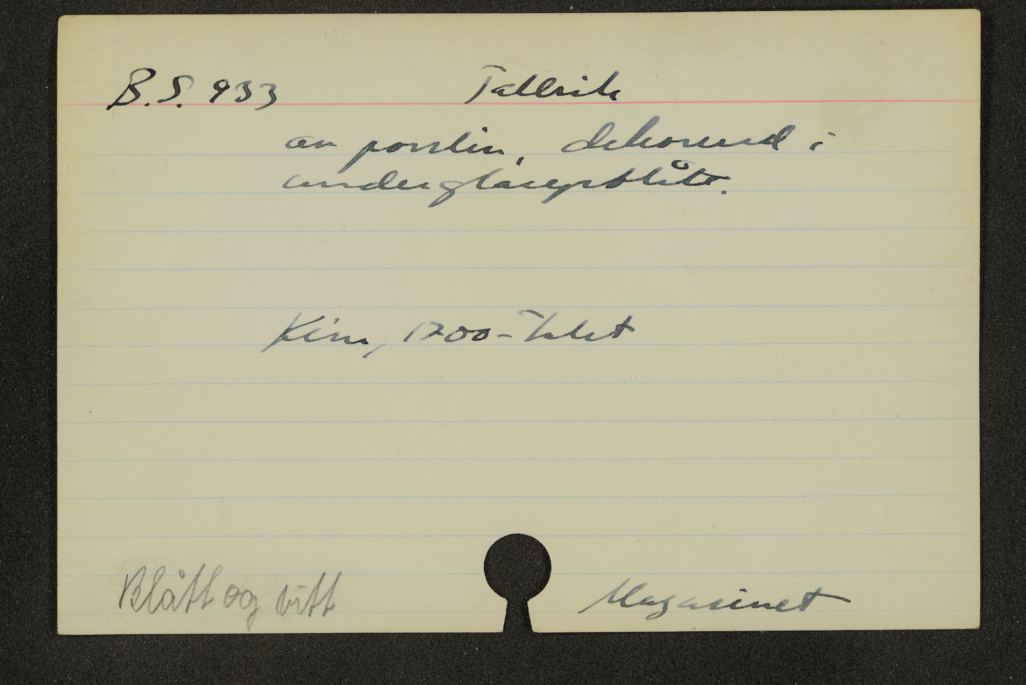 • Katalogkort ur Östasiatiska museets arkiv som beskriver föremål ur samlingarna.