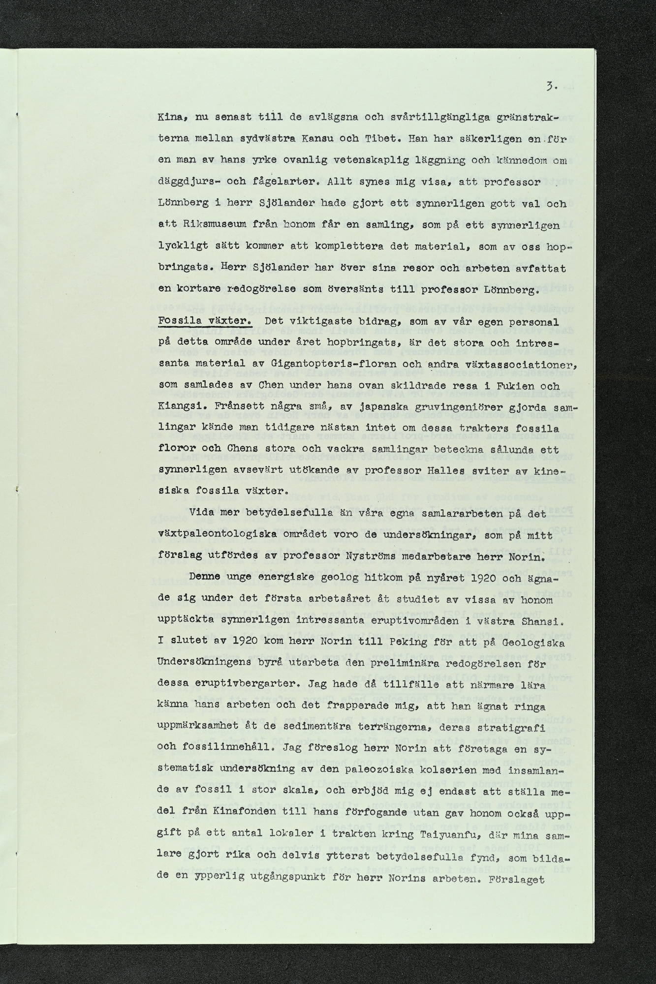 Nr 3, Redogörelse för arbetena för Kina-fonden under 1921