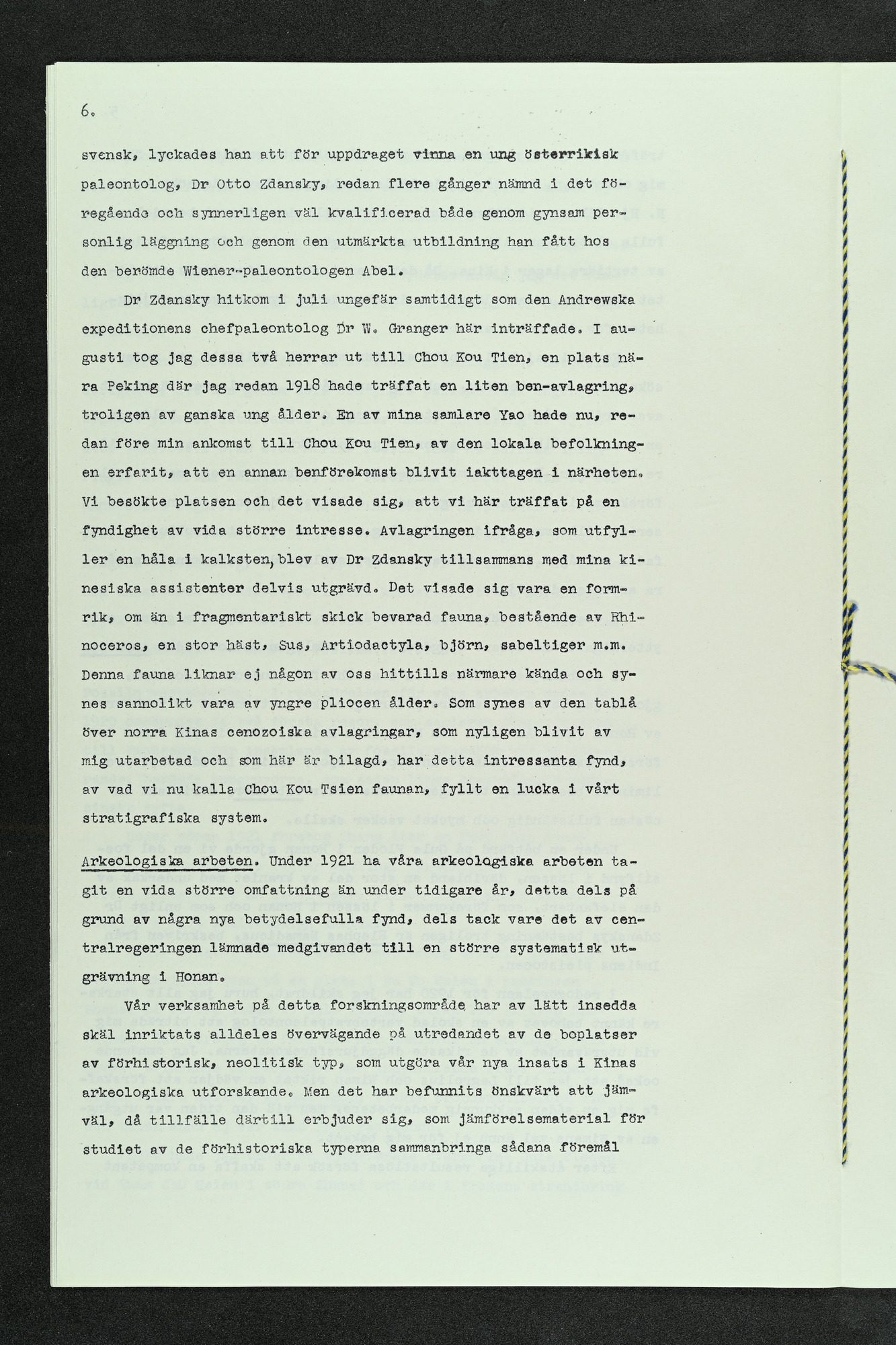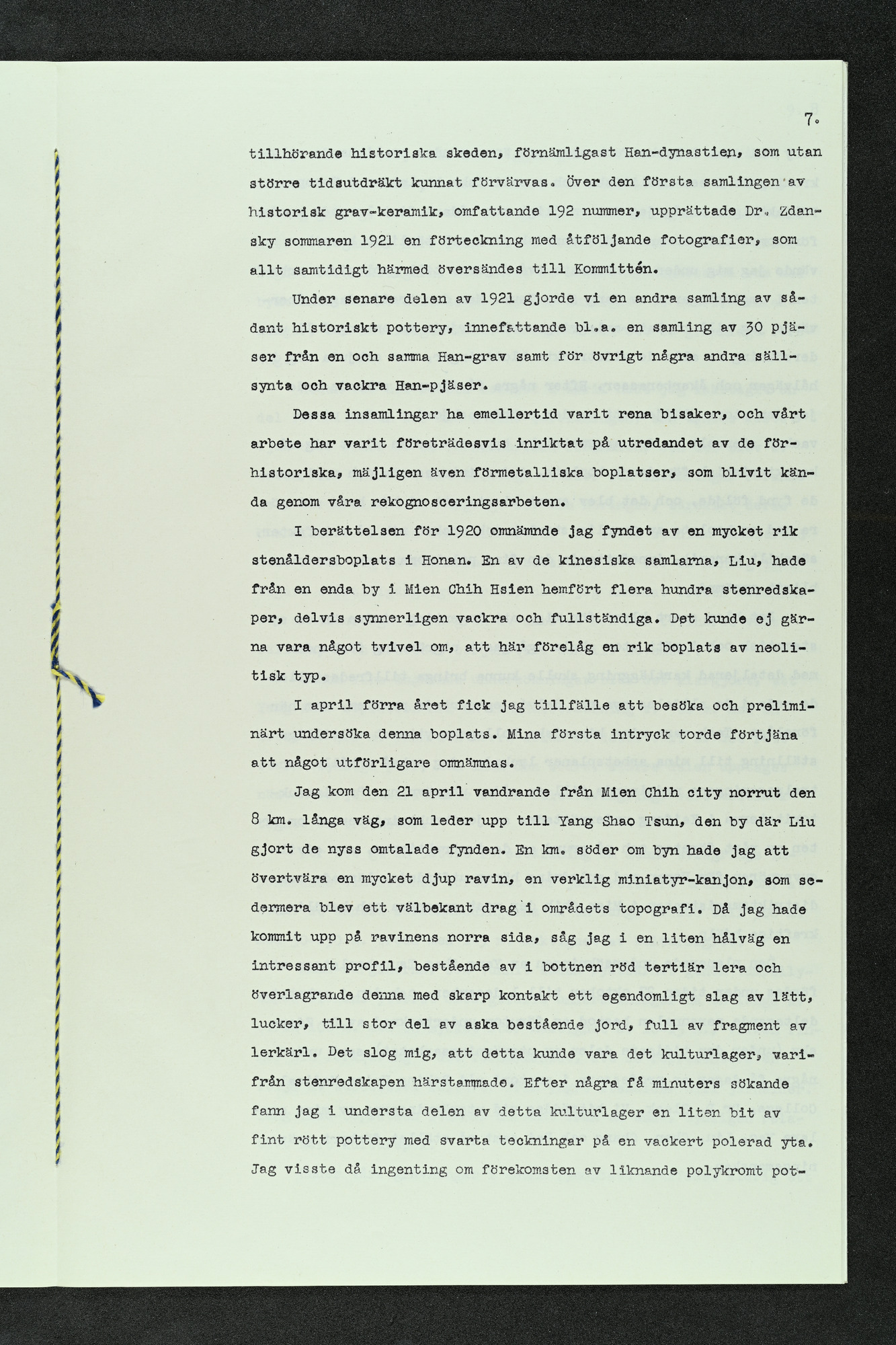 redogörelse, rapport, Nr 3, Redogörelse för arbetena för Kina-fonden under 1921