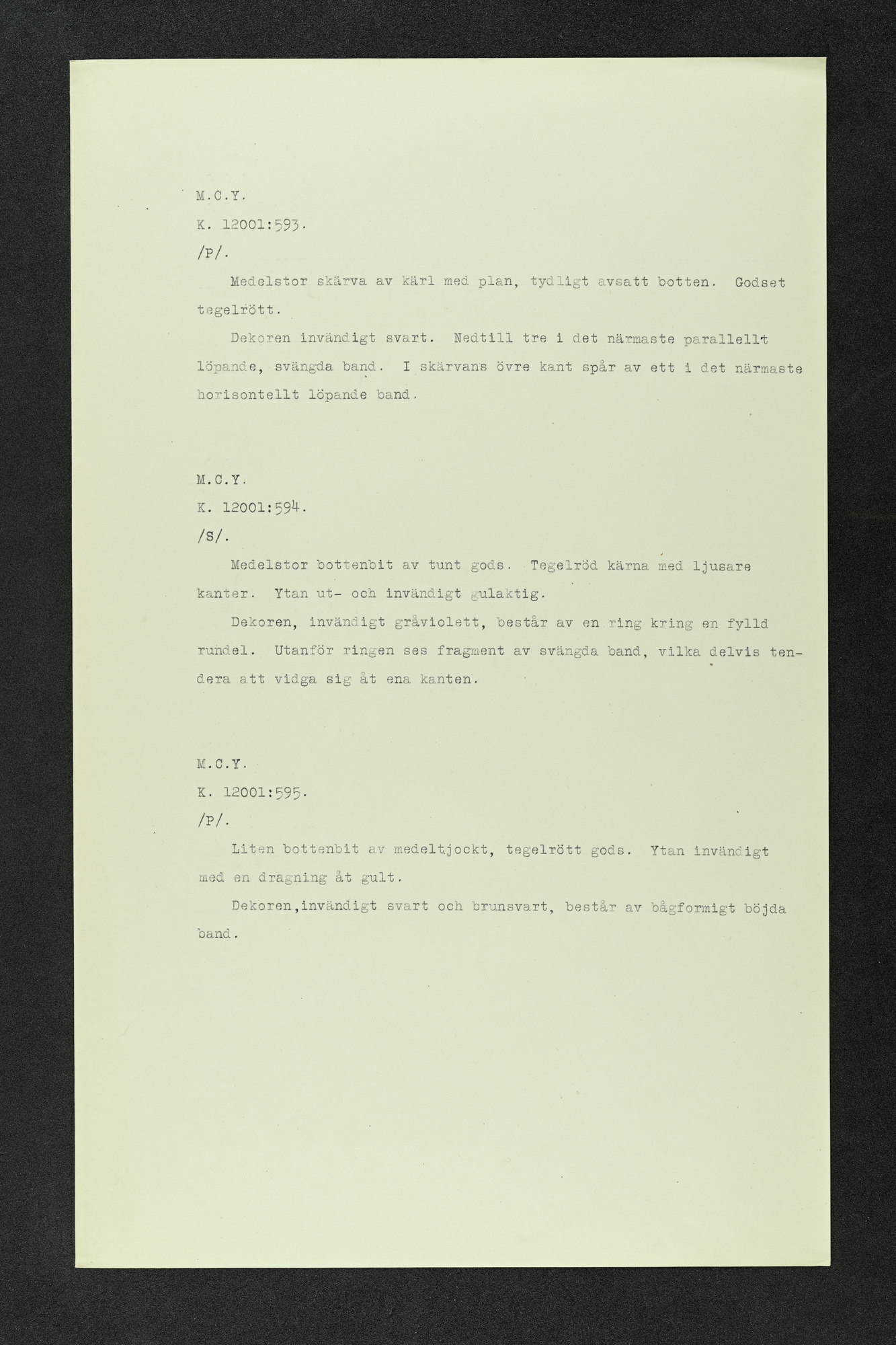 • Ma Chia Yao. Beskrivning av målade keramikskärvor av Nils Palmgren. K 12001: 1-78, 585-929, 1108-1508.